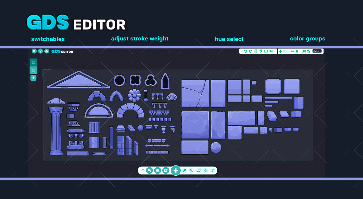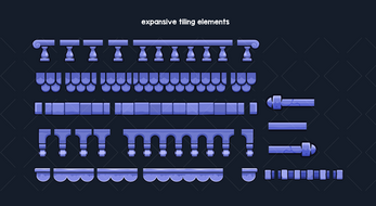 Expand and improve your interior environments with this huge stone and architecture building pack. Make any piece fit your existing project in seconds using the editor's easy asset modification system or drag elemts straight into your project with the included png files or svg files.
