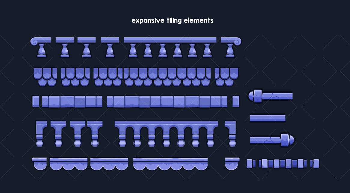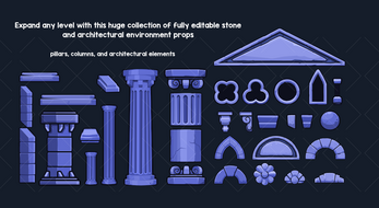 This pack contains stone blocks, stone pillars, tiling elements and on te pieces to either add to your levels or construct entire scenes.